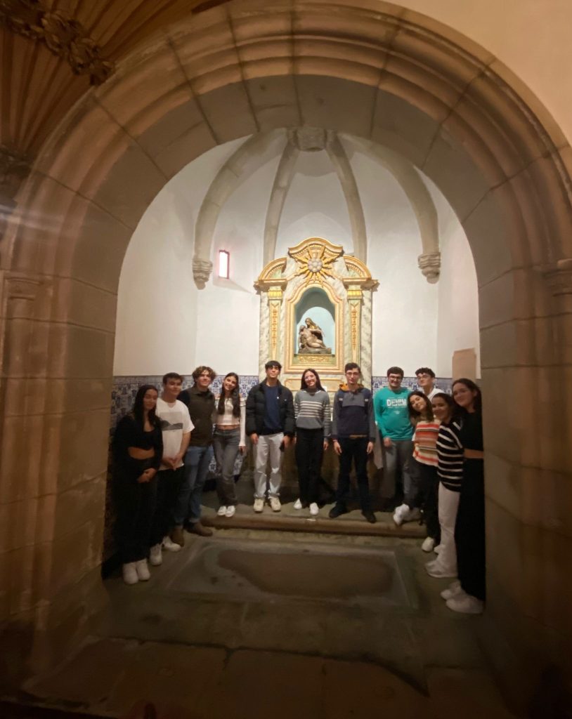 Os alunos na Capela de Nossa Senhora da Piedade, na igreja de São Martinho, em Pombal, em redor do túmulo de Jorge Botelho
